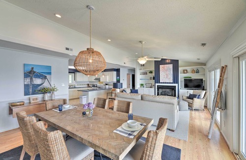 Leave your worries behind as you enjoy a relaxing retreat at this Harkers Island vacation rental! This 3-bed, 2-bath home will feel like your very own oasis on the Crystal Coast, with a nautical living area, furnished balcony, private pier, boat dock, and front row spot to watch the sunset over the water. Whether you're visiting to take part in the island's renowned fishing, sail across the sound, visit historic attractions, or just enjoy seafood on the cape, this home puts you close to it all!