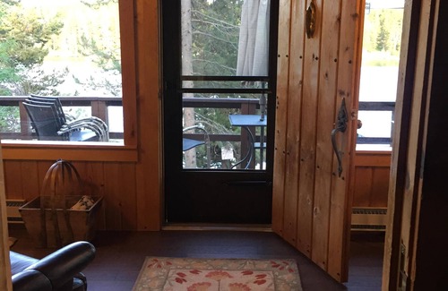 This three-bedroom, two bath cabin sits on Henry's Fork River as it empties into Island Park Reservoir. Newly remodeled, it has two large private decks and beautiful views year round. This tidy cabin features a two-car garage, full laundry with two washing machines and a dryer, stocked kitchen with new appliances including dishwasher, microwave, two fridges and amenities, TV, DVD, wi-fi, bar-b-que, ping pong table, kayaks, new dock, wood burning fireplace insert and patio furniture. New granite countertops. New sink, faucet and disposal in the kitchen. There is a functioning fireplace in the living room. The large master bedroom with king-sized bed can accommodate a port-a-crib or blow-up mattress. The loft bedroom features two full-sized beds and three twins and the downstairs bedroom accommodates two twin sleepers. New floors, bathroom, furniture, and light fixtures. Come spot eagles from the decks or enjoy horseback riding, kayaking, hiking, fishing, or Yellowstone National Park only 26 minutes away. We kindly request no pets on the property.