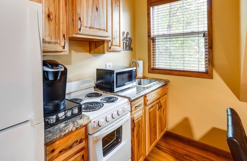 DETACHED STUDIO: Kitchen w/ fridge, stove/oven, microwave, Keurig coffee maker, en-suite bathroom, Smart TV, dining area