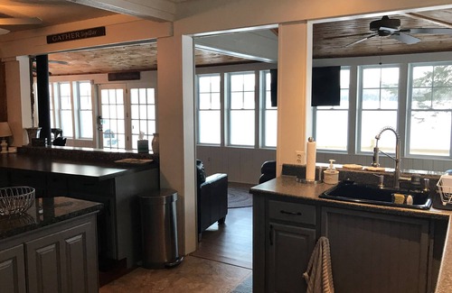 Perfect for Extended Family or Multiple Families/Friends, our "early 1900's built" lake house features both traditional Lake living in the main house on the Waters edge and a modern rustic feel in the Seasonal Guest House & Pole Barn. All three Buildings have views of the Lake. The property consists of a rare 3 acres of flat land overlooking 165 ft of lakefront shore, with an abundance of parking and space for gatherings, including a waterfront field. The main home is equipped with 3 bedrooms and 1 1/2 bathrooms, capable of sleeping seven. The house also holds two living rooms, plenty of tables for family meals, and a spacious kitchen with updated appliances.