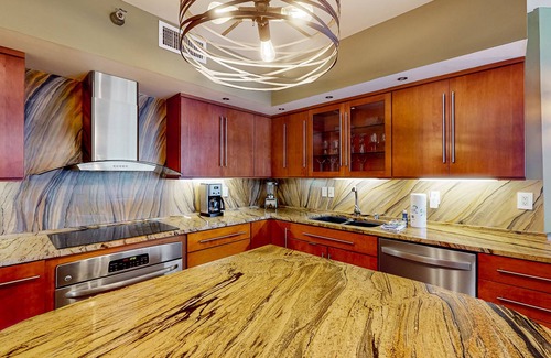 Downtime spent inside will be just as much of a treat with a fantastic open layout perfect for entertaining and beachy decor to get everyone in the coastal mindset from the moment you arrive. Kick back in the living room to reminisce with loved ones or watch favorite shows on the TV offering streaming capabilities. And, when the culinary-inclined guests feel the urge to show off their skills, the full kitchen is outfitted with gorgeous countertops, stainless steel appliances, and plenty of cookware to make any recipe a breeze.