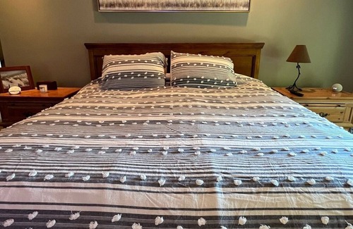 1 - Master Bedroom: King Bed, lakefront-walkout deck - ensuite bath/garden tub/shower.