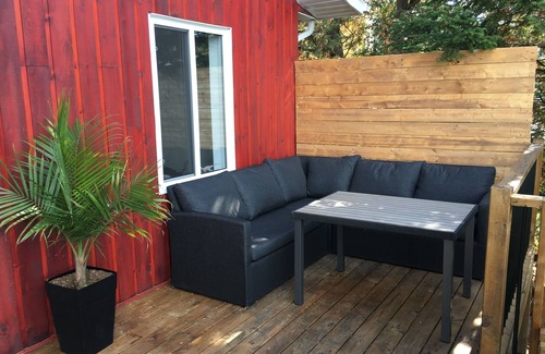 The rental includes (without extra charge) the use of the SAUNA outside private 4 seasons as well as the private inground salt hot tub with view on the lake.