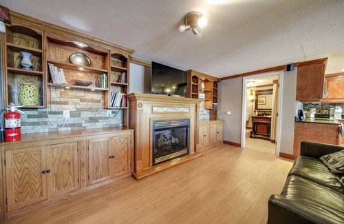 Den: adjacent to the kitchen, this area has a black leather couch in front of a 42" Samsung TV with a Roku stick that also has access to your favorite apps and SlingTV. Below that is gas fireplace. It will get the room warm within minutes during the colder months and makes for a very cozy environment. There is also a half bath connected to this room.