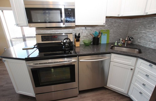 WaveHi! offers a master bedroom with a queen-sized bed, brand new two full baths (super convenient for a family), brand new comfortable full-sized sofa bed, hallway twin XL reading nook/berth bed, new fully appointed stainless and Silestone kitchen, two flat screen TVs (living room and master bedroom), DVD player/movie library, free WiFi, beach chairs and umbrella, programmable coffee maker, hair dryer, iron/ironing board, new HVAC system, new convection oven, microwave, super quiet new dishwasher, stainless appliances, Keurig Coffee machine, high-end quiet ceiling fans, keyless entry system, and much more.