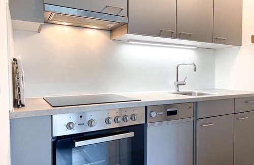 Prepare a home-cooked meal in the kitchen, complete with an oven, a refrigerator, and a dishwasher, as well as a coffee maker, an electric kettle, and a microwave. And because there's access to laundry facilities, you can go a bit lighter on your packing. Other amenities include an ironing board, heating, and a dining table.