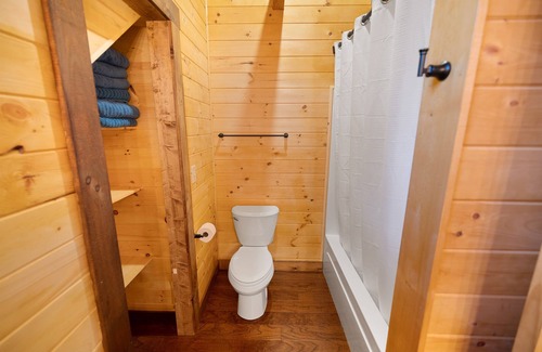 #2 Rocky 2 - Is a bigger cabin , with Two full-size bedrooms, 1 king with full Bathroom, 2nd room has a full with a twin on top, the living room has a sleeper sofa and three recliners, Views of the lake and a grill is right outside the front door, it is equipped with Strong internet and YouTube TV, this is the 2nd cabin and is located closer to the water then Rocky 1
