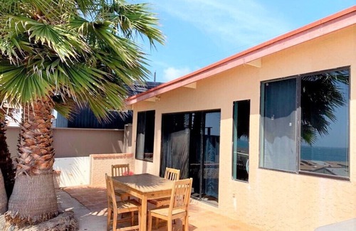 Georgeous coastal front property with deck/patio facing the ocean with panoramic views. It is perfectly located in between downtown Ensenada and the wineries of Guadalupe Valley. It is situated in a very safe gated community with security. Nice amenities: full kitchen, marble floors, sky lights, antique fire place, secure parking for up to three cars, fast internet, 4k SmartTV, comfy beds etc... Also close by are great restaurants, downtown, markets, and surf spots...