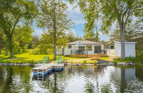 Facing the river, the back deck features beautiful views of the Trent River , a large umbrella and dinning table with seating for 6. You'll also find seating on the dock to enjoy the waterfront view while sipping on your morning coffee. The cottage also includes two kayaks and lifejackets in varying sizes. A BBQ Grill is ready for use with Propane included.