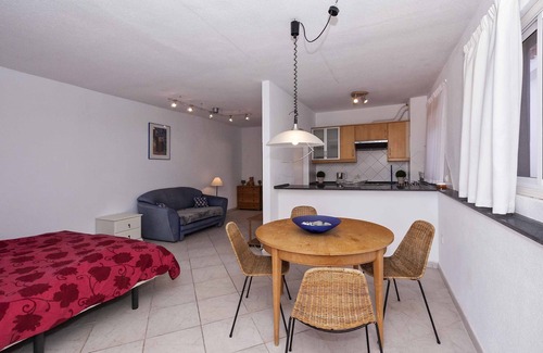 Located in the main house building with a patio door entrance you will find the separate one bedroom apartment with its on American style kitchen and breakfast area. The separate bedroom with built in wardrobes offers a calm and quiet sleeping area. A small bathroom with WC, sink and shower is available. The apartment also holds twin beds in the living area, allowing sleeping space for up to four persons.