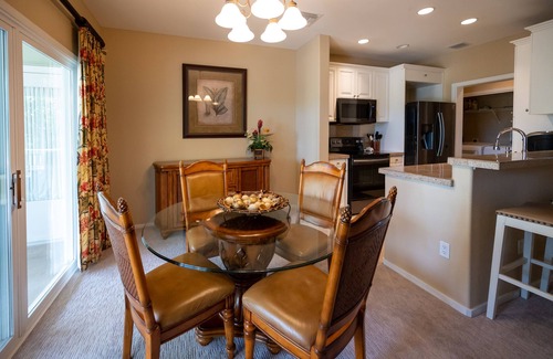 Fully furnished 3 bedroom home in Coconut Plantation! This upstairs unit has an open concept floor plan with kitchen, living and dining area with sliding doors to lanai overlooking the pool. 1st bedroom has 2 twin beds to sleep 2 guests. 2nd bedroom has a queen sized bed with private lanai. Primary bedroom has a king sized bed with en-suite bathroom, dual vanity sink and step-in shower and door to lead to lanai.