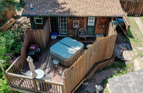 Whether you are looking for a romantic getaway, or place to unwind after exploring all Estes has to offer, this space has it all. The River Cabin is a one bedroom, one bathroom cozy space complete with a gas fireplace and full kitchen. Comfortable queen bed in the bedroom. There is a large jetted bathtub for two as well as fully private hot tub (seriously, all yours!) on your personal deck overlooking the Big Thompson River. A lot of love went into the updating of this cabin with its beautiful river rock fireplace that you can enjoy during a cold winter night. Plush robes, propane BBQ grill, and Direct TV Stream are included in your stay - as well as many other amenities. As guests ourselves at rentals we appreciate a seamless check-in process. For your convenience we have keypad locks on the front door to allow you contact free check in to begin your vacation stress free!