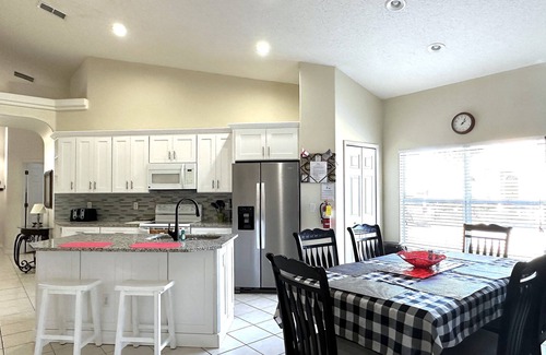 Glenbrook on US27 and just 1.5 miles north of Hwy192 and its vast array of shops, restaurants and entertainment. Attractions such as Walt Disney World (8 miles), Universal Studios, Epcot, MGM Studios and Animal Kingdom are all within 5 to 15 minutes drive of the Villa. Major Shopping Malls are within 20 minutes and Supermarkets such as Publix, Kmart & Wal-Mart all within 3-10 miles. Orlando International Airport is 40 minutes drive. Clubhouse has Internet access, movies, Pool, Tennis, Volleyball, Gym, and Games room. There are many restaurants, shops, banks, and fast food outlets all within 1-5 minutes drive. These include Publix and , McDonalds, Burger King, Pizza Hut and a Chick-fil-a; there are numerous local and branded restaurants featuring food from all over the world. There is a Walgreen's (chemist/convenience) store at the entrance to the Glenbrook community.
