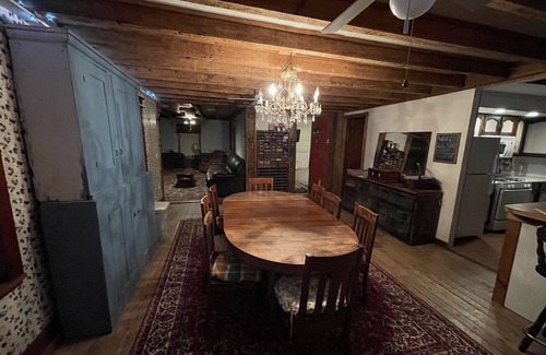 Originally named the A. Tuttle Inn it was built in 1823, is known far and wide as The Greenhouse because of its siding. In the early 1800s, Westfield was settled mainly by solders who where given property for participating in the American Revolution. The spacious inn has beautiful, hand carved wood work, exposed beams and wood floors. Enjoy 5 acres of country life in the valley on the Cowanesque River. This home has been in our family for over 70 years and we're so excited to share it with you.
