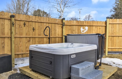 The goal is for you to relax, recharge, enjoy, love and breathe. We offer a private 3 person HOT TUB , an interior infrared SAUNA, a 72" freestanding bathtub and a corner shower for the ULTIMATE spa experience. We even have a towel and robe warmer. The ZEN has a king bed with an adjustable & vibrating bed base. The cozy 600 sqf home is equipped with everything your heart could desire. Artistic Design around every corner. BOHO swings on the private porch. We abutt a 13 ac conservatory land with walking & hiking trails off the backyard. We supply slippers, bathrobes and other small amenities. Enjoy a fire outside (we do not supply firewood)