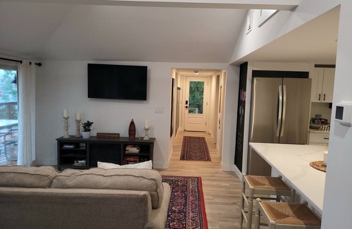 Love outdoors? If fishing, boating, or kayaking are your passions, this rental is for you. A wall of sliders in the open concept living and dining area frames panoramic views that stretch across Golden Pond to Morton Pond and Billington Sea.