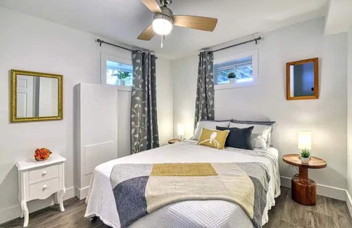 The ground floor with its cathedral ceiling has a gas fireplace and a flat screen TV, perfect for warm gatherings on cooler evenings. Access to Netflix/Amazon TV and high-speed WiFi is available.