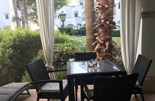 You'll find a kayak, golfing, and more on site at this beach apartment. Cala Santany Beach is just steps away and Es Pontas is within an easy 7-minute walk, so leave your car at the property, which offers onsite parking.