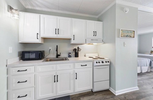The well-stocked Kitchenette is perfect for preparing a quick bite before hitting the Beach. With a Dining Table for 4, Refrigerator, Stove/Oven, and microwave, you’ll have all you need - so much better than hotel life, don’t you think?!