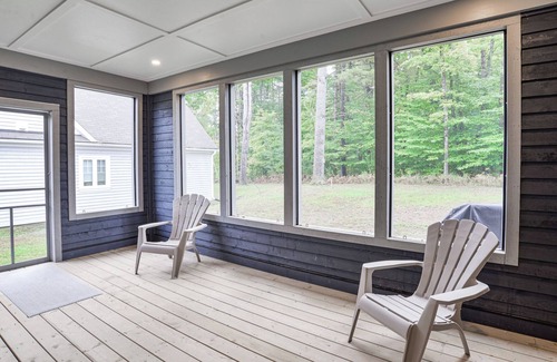 Experience the great outdoors from the comfort of the screened-in porch, or relax on the front porch featuring traditional Muskoka chairs. These inviting outdoor spaces are perfect for enjoying morning coffee or evening cocktails while taking in the natural beauty of Muskoka.