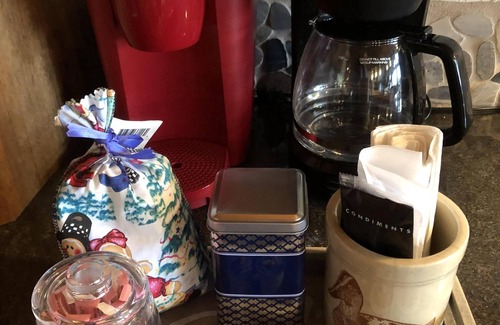 With over 3,600 sq. ft. of private, guest accommodations spread out over two levels; our home provides plenty of spaciousness for togetherness or privacy in one of the three bedrooms (total home is over 6,000 sq. ft., with three stories, but basement is not included with guest rental, only main and top levels). The main level features an open floor plan which includes living, dining, and kitchen with two separate bedrooms, a full bath, and laundry. There is a TV in the den with cable. Both main floor bedrooms feature comfy queen beds with pillow top mattresses. The vaulted living area has a floor to ceiling rock fire place and windows to enjoy the panoramic, tri-state view. The dining table seats six plus four barstools at the bar. The fully equipped, gourmet kitchen features granite countertops, stainless steel large capacity refrigerator, gas range with duel ovens, and dishwasher. The top level is home to the vaulted ceiling master suite and bathroom. There is a TV with cable and a king size bed in the master. The bathroom includes a double shower with a separate garden tub (non-Jacuzzi). Beyond the bathroom is a kitchenette with private balcony to enjoy your morning coffee on crisp mountain mornings!