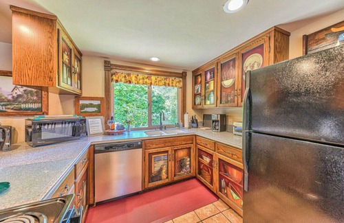 Enjoy picturesque views of the surrounding mountains, river, and valley from the small deck—an ideal spot for a quiet morning coffee or evening glass of wine. For outdoor gatherings, a spacious patio provides plenty of room to relax, dine, and unwind (please note: patio does not offer views).