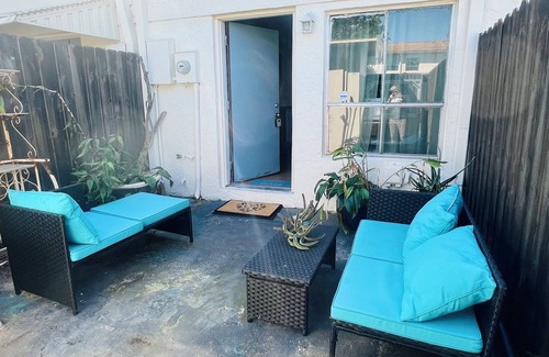 The townhouse has a private tropical patio outside the kitchen with seating. There are several edible plants/trees outside the townhouse that you are welcome to use the fruit from: lemongrass, Thai guava, Jamaican plum, Leaves of the Gods, lime tree, and loquat trees.