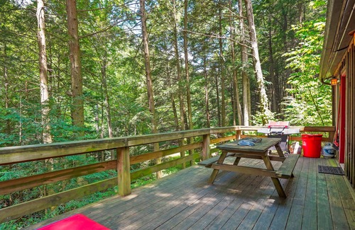 Welcome to Whip-poor-will, your tranquil couples' cabin nestled amidst the serene forest of hemlock trees in Hocking Hills, Ohio. This charming cabin offers a perfect escape from the bustle of everyday life, inviting you to relax and reconnect with nature. As you approach Whip-poor-will, the inviting exterior greets you with its rustic charm. The surrounding forest of towering hemlock trees provides a sense of seclusion and privacy, allowing you to fully immerse yourself in the beauty of nature. Must be 21 years or older to rent. AWD/4WD recommended.