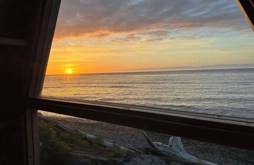 Whiskey Creek Beach NW has exquisite views of the Straight of Juan De Fuca. This unique A-Frame shelter is situated only a few feet from the beautiful pebble beach with unobstructed views of the Canadian Cascades. *note: You are able to drive up to a small parking area near this site to unload, but parking for beach sites(T9-14) are up a hill. No parking at the site. *also note, our Wifi can be spotty due to our remote location.