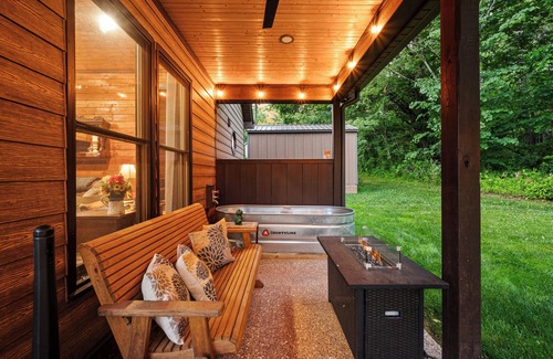 Outdoor Bliss: Savor your mornings on the wrap-around covered porch, complete with a luxurious outdoor tub (hot/cold faucet) and cozy porch swings. Gather around the fire pit for memorable evenings under the stars.