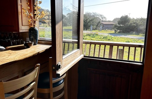 Get ready to relax! Enjoy whitewater ocean views by day and a sky full of stars by night. Hear the sounds of birds, frogs, and crashing waves, and breathe in the crisp, clean air. This unique and tranquil getaway is handcrafted with art deco details and a round house design. The property is adjacent to the Jug Handle State Preserve with the beach and trails to enjoy, and there is easy access to Fort Bragg and Mendocino towns.