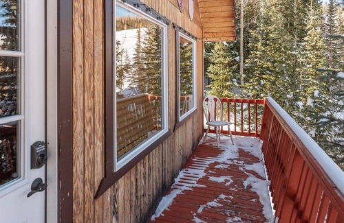 Our “Small Cabin” sits directly behind Georg’s Ski Shop, and is right at the base of two chairlifts (Chair #1: Wildflower, and Chair #8: Alpen Glow). This condo is ski-in/ski-out with a short 60-second walk to Chair #1. The downstairs bedroom contains a single Queen bed, while the upstairs loft contains two Queen beds. The living room has a small television with DirecTV, a sofa, and a gas fireplace. This cabin is perfect for a small family or a few adults looking for solitude.