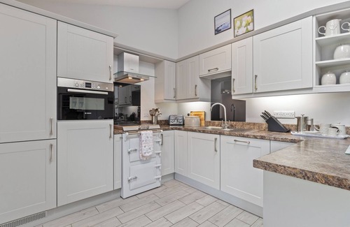 The well-equipped kitchen has everything you need for your self-catering holiday including a fridge/freezer, small range cooker, dishwasher, and built in microwave.