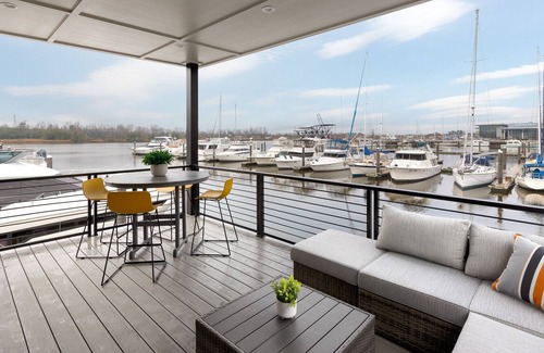 Brand new construction in the Port City Marina -- Welcome to The Dockside! This brand new modern over-the-water home is anything but a stodgy houseboat. At nearly 1,500 square feet of spacious living and covered terrace area, this modern home is conveniently located between downtown and the new Live Oak Riverfront Amphitheater, with a six-minute walk to the Wilmington bars and restaurants downtown and next door to the famed Marina Grill.