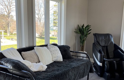 Beautiful two bedroom loft with pool table and ping pong table for your enjoyment. Very unique property surrounded by vineyards and wineries overlooking Lake Ontario. Accommodations include two bedrooms each with a queen bed, as well as a pullout couch and daybed located in the living area. Property is located behind family home. A pool and hot tub are available but not exclusive to vrbo guests.