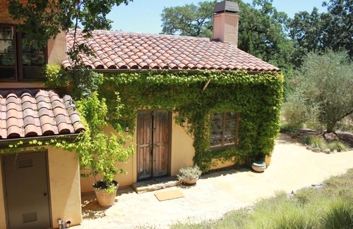 Relax and refresh in the comfort of this charming Tuscan-artisan styled villa on over 3.5 acres with a 40 x 16 ft heated pool (heated May-October, closed Nov-April)* with spa open year round. Pool has diving board and automatic pool cover. Experience a unique escape, expansive valley views and soak in the wine country in dappled sun under the olive tree grove, soak under the stars in the hot tub. Hear the soothing sound of bubbling, running water from the Sonoma Creek which borders the property. This is a perfect wine country retreat made-to-order for a lazy sun-drenched experience with plenty of shade and stillness. 3-4 Night Minimum depending on season.