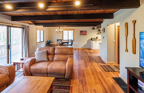 Situated on 2 acres, our cabin is located in the lake access community of Suissevale. There are miles of maintained roads for walking, running & biking. The beach/lake is just a mile from the cabin.