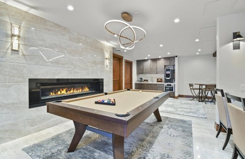 Step inside this single-story condo, where an enchanting mix of natural textures, modern finishes, and splashes of color create a charming and stylish environment. The elegant kitchenette is equipped with a Bosch convection oven and Wolf induction stovetop for whipping up meals and a wall-mounted breakfast bar for 2 to dine. When bedtime arrives, the primary bedroom has a king bed, sweeping mountain views, a private bathroom, TV, and sitting area. Chase away the chill by cozying up to the gas fireplace on the plush L-shaped couch and watching TV. Take the provided telescope onto the balcony for a late-night exploration of the starry Utah sky! The guest bedroom with a king bed, TV, and private bathroom also includes the exterior entry to the home. By the entrance are hooks for outdoor gear and a laundry room for freshening up any athletic wear.