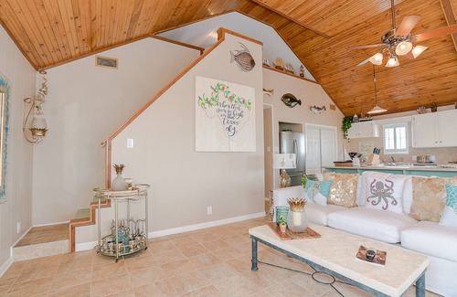 Three bedroom plus loft upstairs Canal/Bayfront home located in Treasure Island right on the edge of Galveston and Freeport! Boat slip, huge dock, plenty of outdoor seating . The location is everything with the luxury of fishing San Luis Pass without leaving the house! One double kayak onsite that is perfect for a ride in the canal or fishing the shallow parts of the bay. Sammie's Sunset has some of the most beautiful views on the Texas coast!