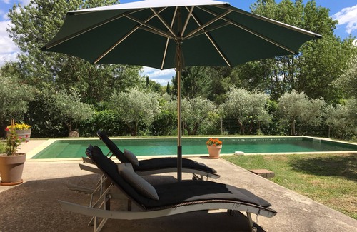 We are quiet, not overlooked, facing the pine forest. The house has 4 bedrooms (sleeps 8) a bathroom, a shower room, 2 WCs, a 56 m2 lounge / dining room, a 10 x 4 salt pool, a 70 m2 shaded terrace and a garden of 2000 m2 planted with hundred-year-old olive trees. We rent weekly only from in July and August. Arrival can be on Friday, Saturday or Sunday at the convenience of the tenants.