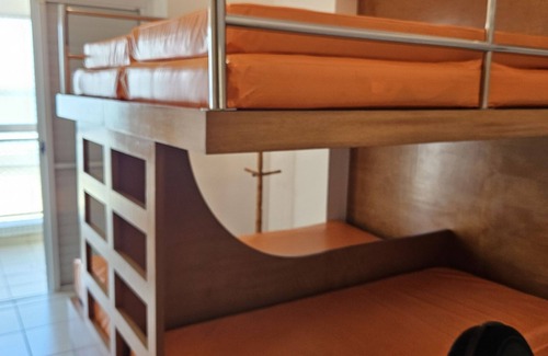 Apartment with oceanfront safety net, 2 bedrooms and 1 suite, living room for 2 environments, kitchen, large laundry room with washing machine, terrace with barbecue, 2 parking spaces, 39 'Led TV in the living room, dormitory room with TV, ceiling fan, microwave, pillow, household items and more.