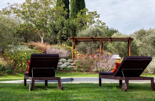 Garden: swimming pool (private, length: 12m, width: 6m, depth: 1.5m, outdoor), barbecue, al fresco dining, two gazebos, terrace furniture, ten sunbeds.