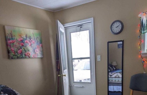 This is a freshly redone motel room in a quiet area of town. Includes kitchenette with all the utensils, full fridge, stove, microwave, and coffee maker. Easy to find, simple parking, and self check in.