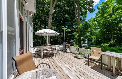 A delightful cottage in the woods in the historic waterside community of Bayside. This cottage is a short 2 minute walk from the beach and dock. Converted from an old stable around 1929 and substantially renovated again in 1988 in traditional cottage finishes. This cottage is as comfortable as it gets. Just off the unpaved side street, this property is rare in the Bayside community in that neighbors aren`t as close by.
