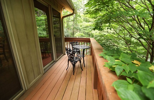 Woodland Retreat boasts an outdoor hot tub just 2 miles from downtown Asheville with self check-in! Entire property is extremely private and surrounded in native plants and trees! Stand on the front deck and glimpse life at tree level and enjoy waterfall sounds.