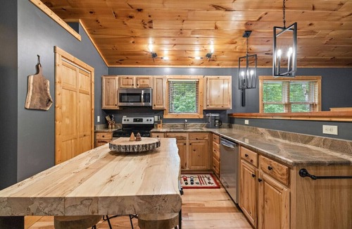 This dog-friendly 2-bedroom cabin is nestled in a quiet forest setting, just minutes from Beech Mountain Resort. You’ll have the entire home to yourself, including a fully equipped kitchen with a spacious island, a cozy living area with a stone fireplace and Smart TV, and a private deck with grill and outdoor dining.