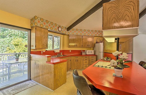 The good times never stop flowing in the town of Willow Creek! Stay at this waterfront home on Trinity River, and enjoy a long list of river activities: kayaking, rafting, fishing, and cooling off in the local swimming holes. If you prefer fun on land, hit the hiking trails in the surrounding Six Rivers National Forest or take a day trip to Redwood National and State Parks! Spend in-between moments at this vintage-style vacation rental hosting 3 bedrooms, 2.5 baths, and all the comforts of home.