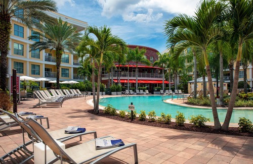 • Take a break from the parks and enjoy yourself at our 360 Degree Vanishing Edge Pool with a zero-entry point. Our climatized pool is spot-on for sunset relaxation.