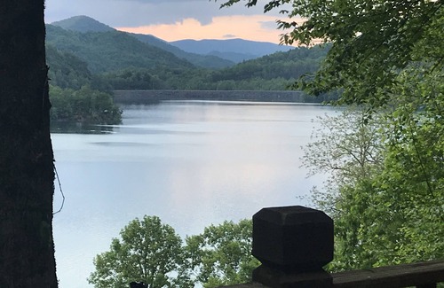 Check out the scenery at beautiful Lake Nantahala from the grand views in almost every room from our spacious log cabin! Sparkling and fresh with new furnishings as of August, 2025! Bring your boat, or rent one here, and dock it at our private 20' x 20' boat dock, located less than a 1/4 mile from the cabin. It's the perfect place to soak up the sun and swim in the crystal clear lake!