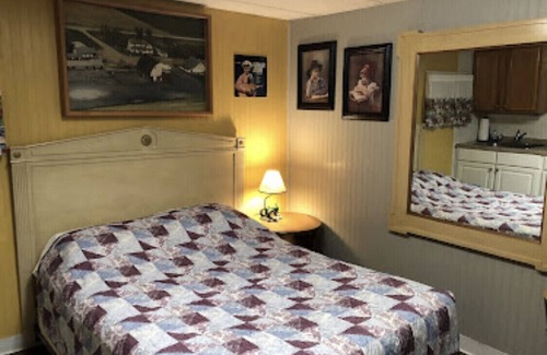 You will have a 12' x 22' room plus a 6' x 8' bathroom. Your room has two full beds and a retractable curtain which reaches all the way across the room, dividing the room into 2 sleeping spaces. A kitchenette with two stove tops, microwave, mini fridge, pots/pans, cutlery, crock pot, coffee pot. The bathroom features a roomy walk-in shower, grab bars, 15" stool, and vanity with medicine cabinet. Pack N' Plays available for infants. Iron and ironing board included.
